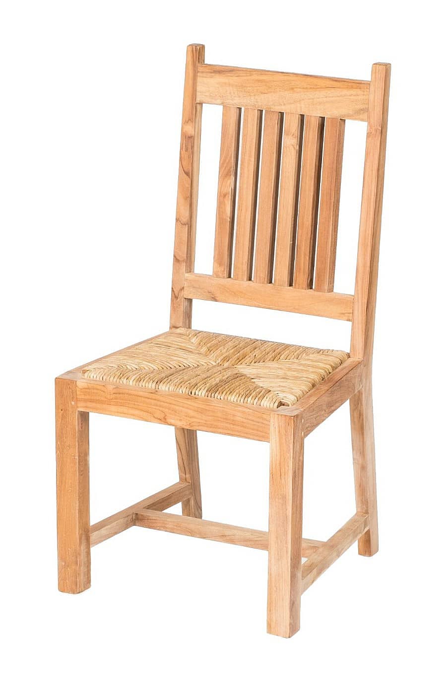 Masívna stolička NANDA klasickej konštrukcie vyrobená z indonézskeho teaku. Sedák drevenej stoličky je starostlivo a dekoratívne vypletený z kvalitnej a veľmi odolnej morskej trávy. NANDA je vďaka zosilnenej konštrukcii pevná a stabilná. Nohy sú chránené plastovými krytkami. Stolička je navrhnutá do interiérov k jedálenským stolom. Bez povrchovej úpravy v prírodnej verzii.