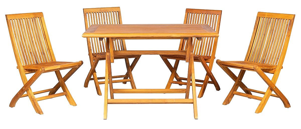 Sestava obsahuje: 1x Teakový skladací stôl VASCO, 2x Skladacia teaková stolička PINA