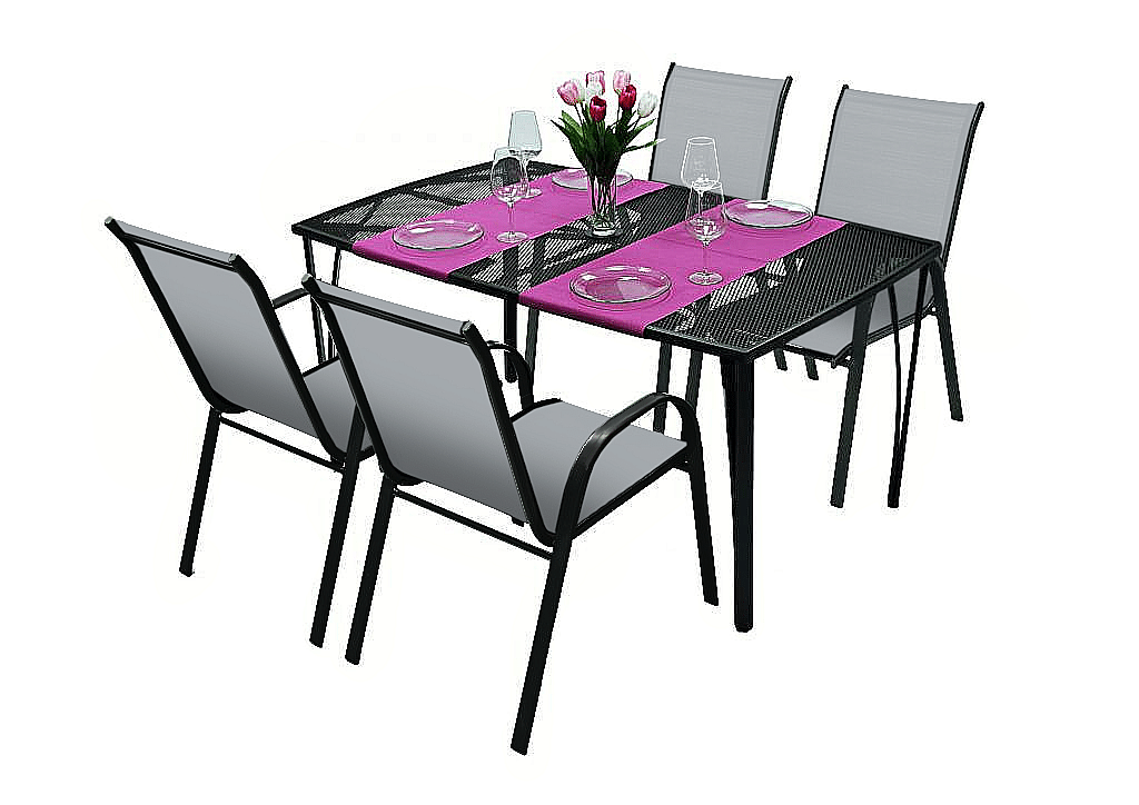Hľadáte pre svoju rodinu pekný a účelný záhradný nábytok? V tom prípade by vašej pozornosti nemali uniknúť pôvabná a bezúdržbová kovová zostava Georgia 1 + 4. Obsahuje obdĺžnikový kovový stôl, ktorý dopĺňajú 4 pohodlné stoličky v kombinácii kov a umelá textílie. Je veľmi žiadaná, pretože sa hodí do záhrad, zimných záhrad, na terasy aj väčšie balkóny. Stôl má rozmery 150 × 90 cm, k tomu pri plánovaní počítajte s priestorom pre stoličky.