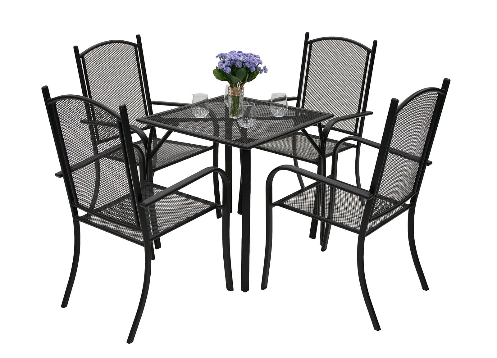 Sestava obsahuje: 4x Kovové kreslo NANCY (čierne), 1x Kovový stôl EDEN 70×70 cm
