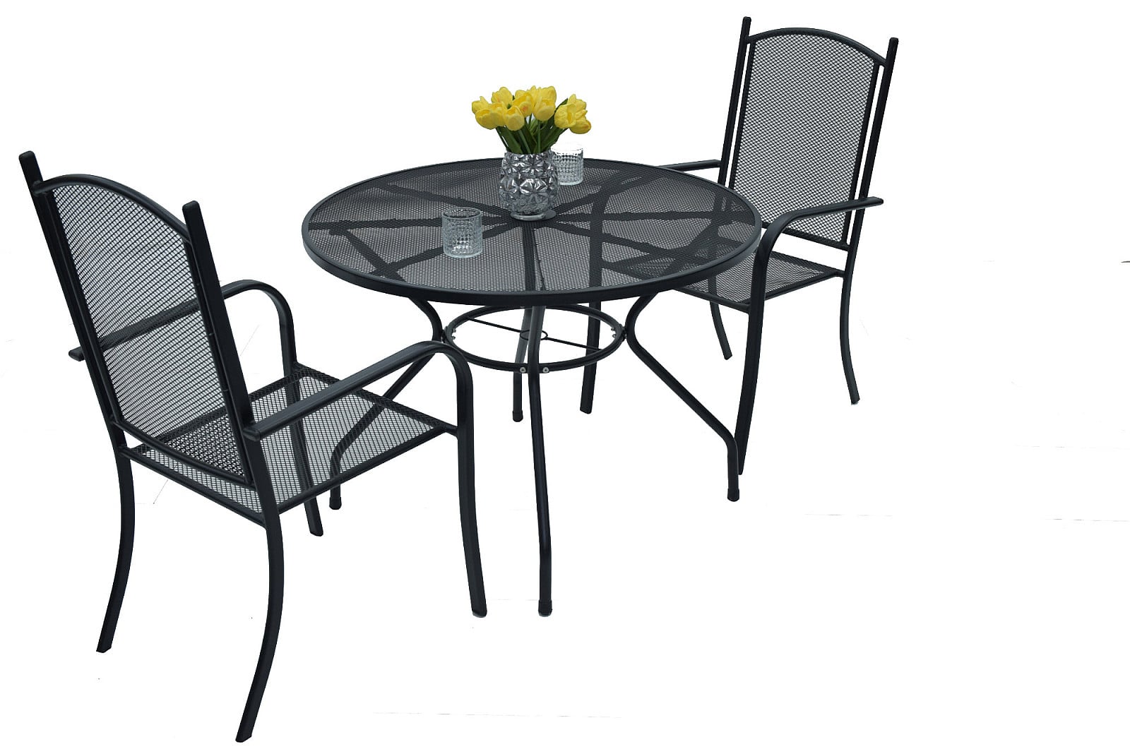 Sestava obsahuje: 2x Kovové kreslo NANCY (čierne), 1x Kovový stôl TAMPA ø 106 cm (čierna)