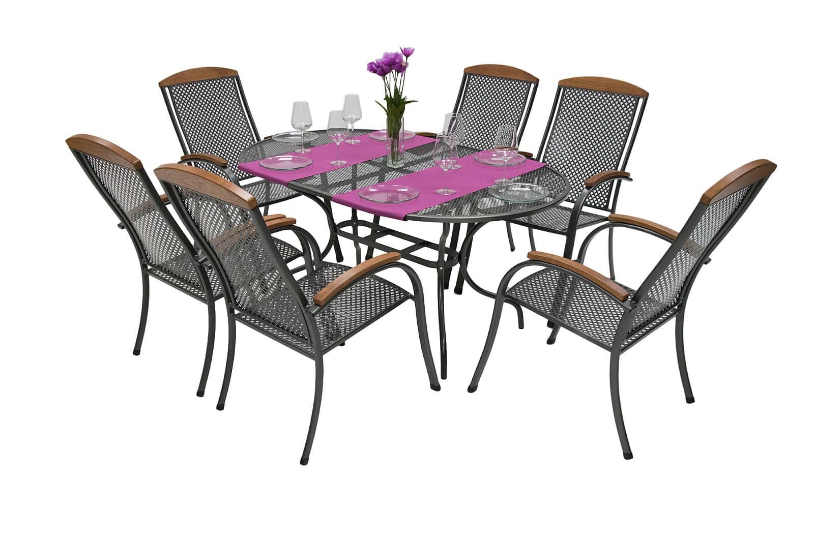 Vyberte si z našej ponuky kovových zostáv záhradného nábytku za internetové cenytu najlepšie do vašich priestorov a dajte svojej záhrade nový život. Sestava obsahuje: 6x Kovové kreslo s drevenými podrúčkami PROVENCIA