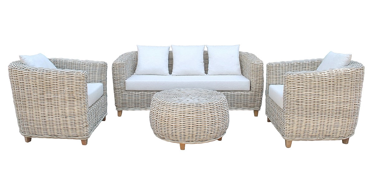 Záhradná ratanová zostava CORDOBA z prírodného brúseného ratanu CUBU. Brúsený ratan je ponechaný v prírodnom stave. Set sa skladá: 2x kreslo (92x86x76cm), 1x sofa (188x86x76cm), 1x ratanového stola (priemer 80 cm výška 45 cm ).