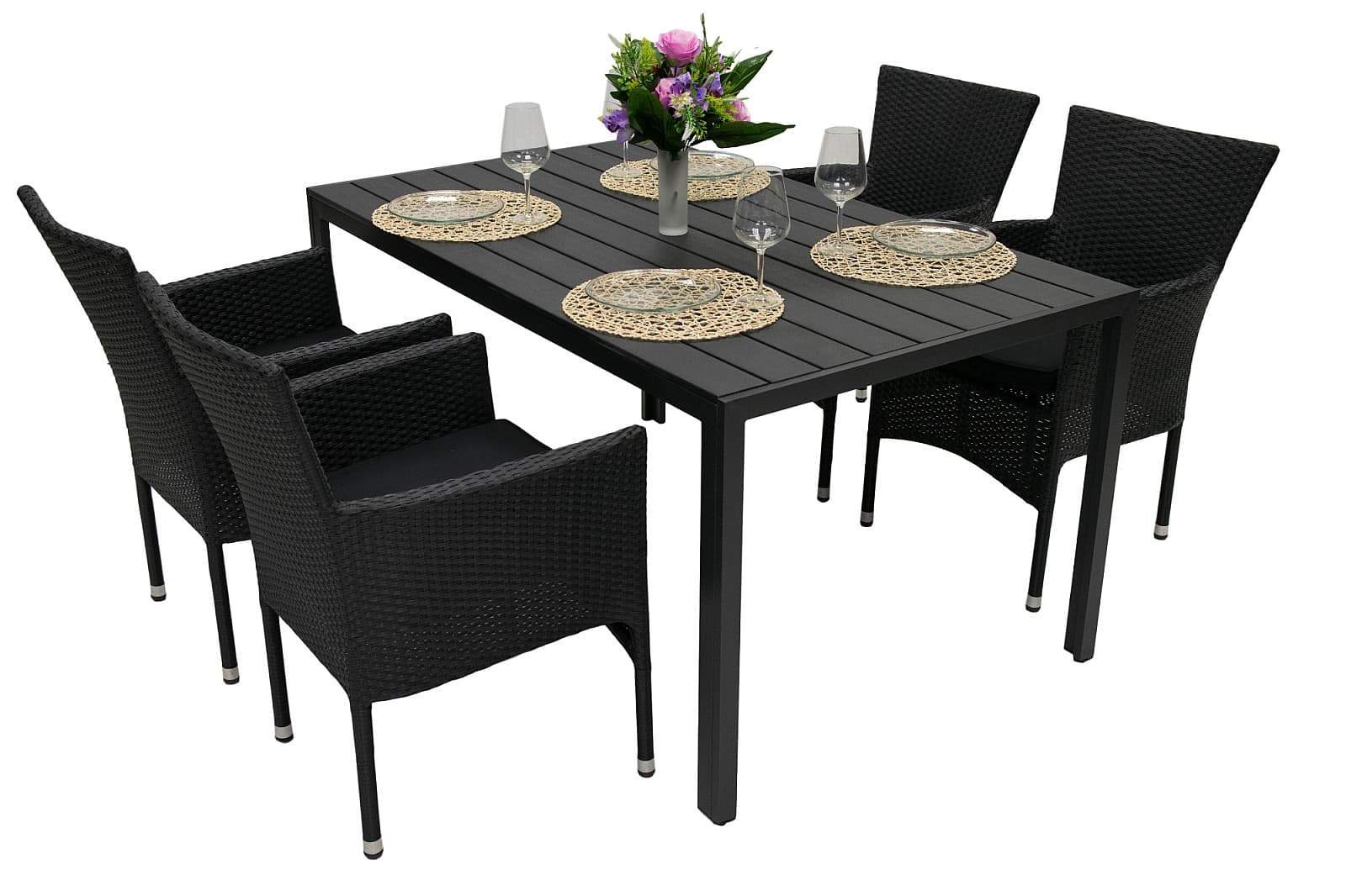 Sestava obsahuje: 4x Ratanové kreslo stohovateľné PALERMO s poduškou (čierna)