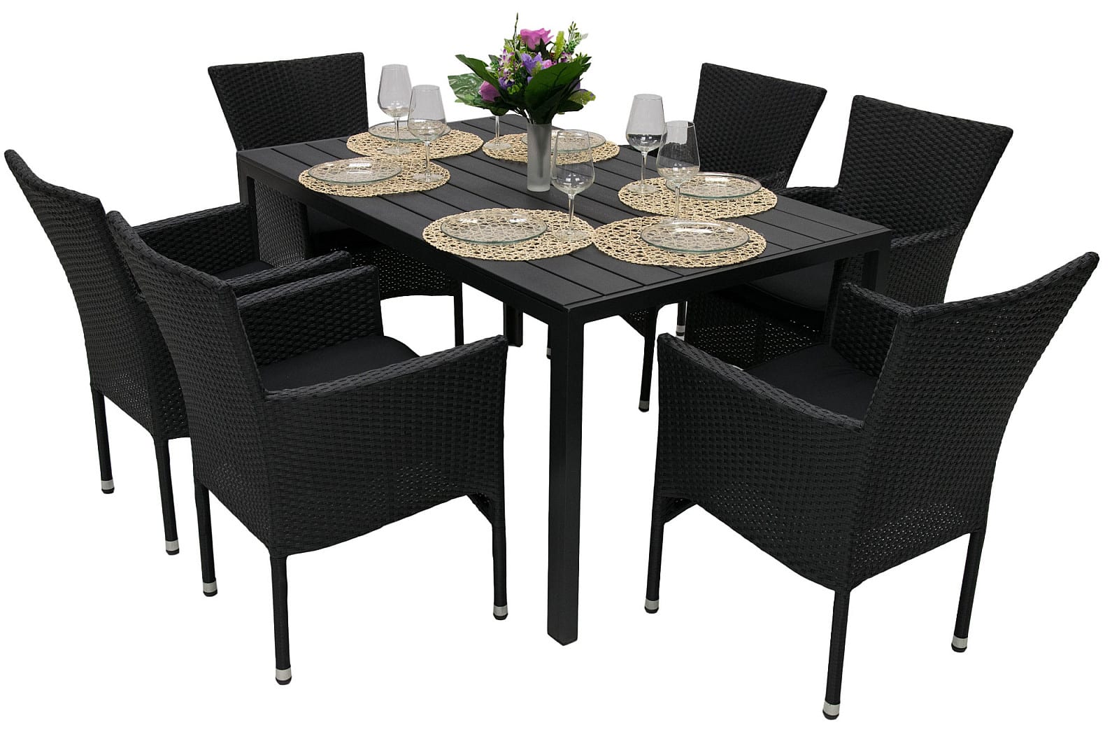 Sestava obsahuje: 6x Ratanové kreslo stohovateľné PALERMO s poduškou (čierna)