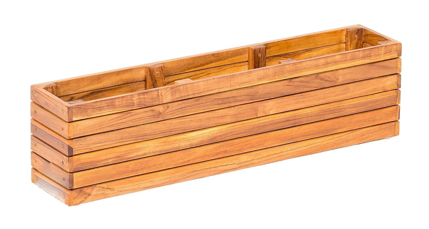 Drevený kvetináč FIORI vyrobený z kvalitného indonézskeho teaku. Starostlivá remeselná práca. Veľmi odolný voči vonkajším vplyvom ako je dážď alebo slnko. Záhradný kvetináč je ošetrený teakovým olejom.