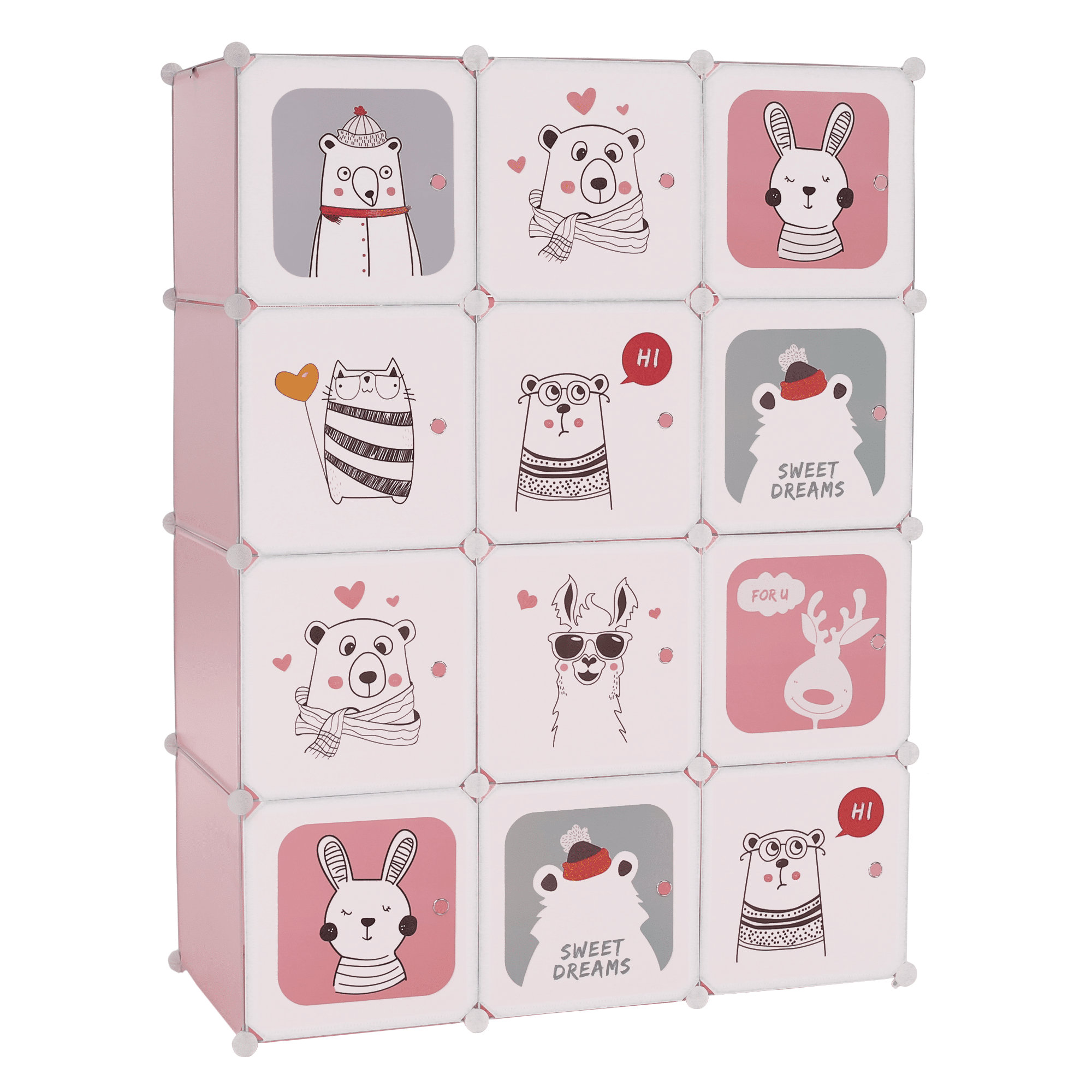 Detská modulárna skriňa, ružová/detský vzor, NURMI