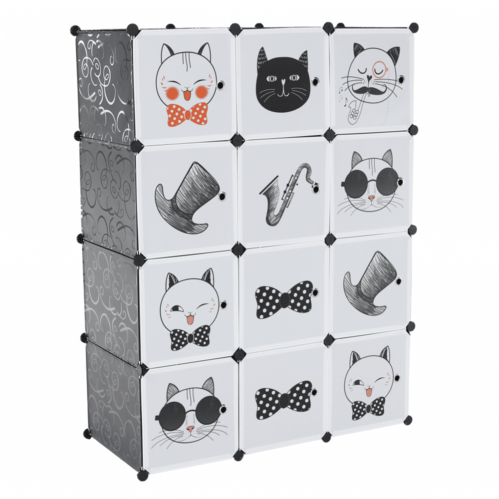 Detská modulárna skriňa, sivá/detský vzor, AVERON