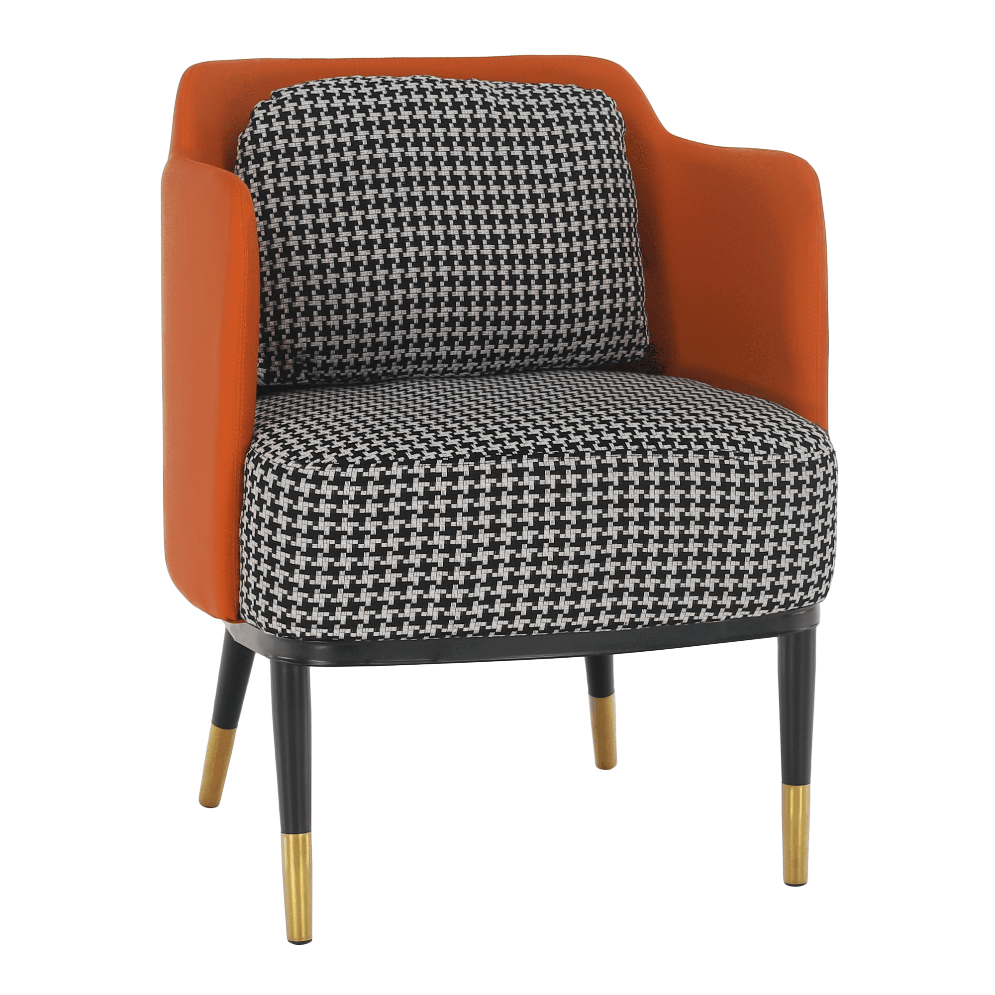 Dizajnové kreslo, čiernobiely vzor/oranžová ekokoža, EMREN