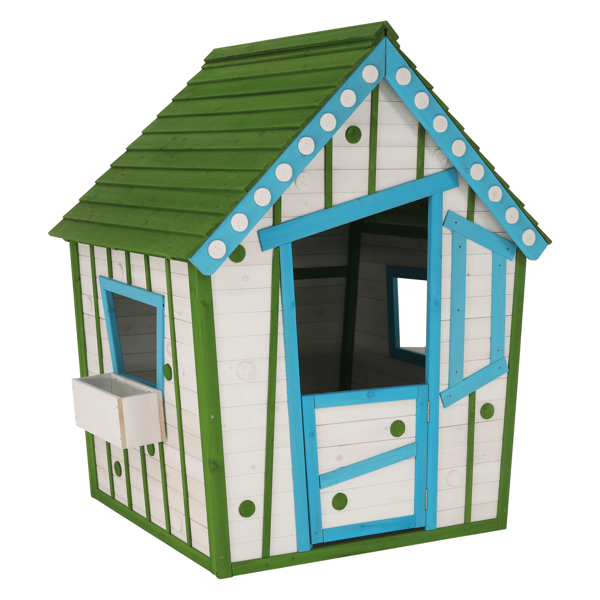 Drevený záhradný domček pre deti, biela/sivá/modrá/zelená, LATAM