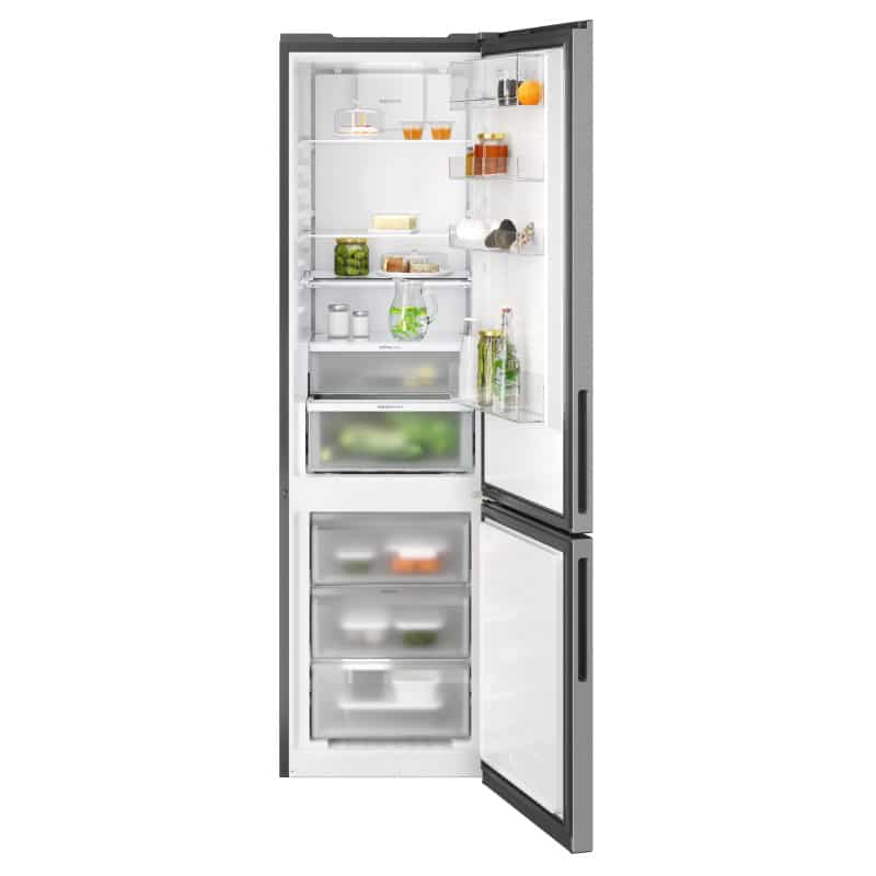Chladnička kombinovaná s mrazničkou dole NF; Electrolux 700 GreenZone+ ENT7MD36X; Výška (cm): 201; Technológia: No Frost; En.trieda: D; Čistý objem chladničky/mrazničky (l): 260/103; Ovládanie: Elektronické, interné; Displej: Áno; Hlučnosť (dB): 37; Ventilátor: Metal MultiFlow; Nízkoteplotná zásuvka: ExtraChill; Custom Flex: Nie; Farba: Infinity Brush; Motor: Invertor s 10 ročnou zárukou; Rozmer VxŠxH (mm): 2020x595x664; Madlá: Integrované vertikálne