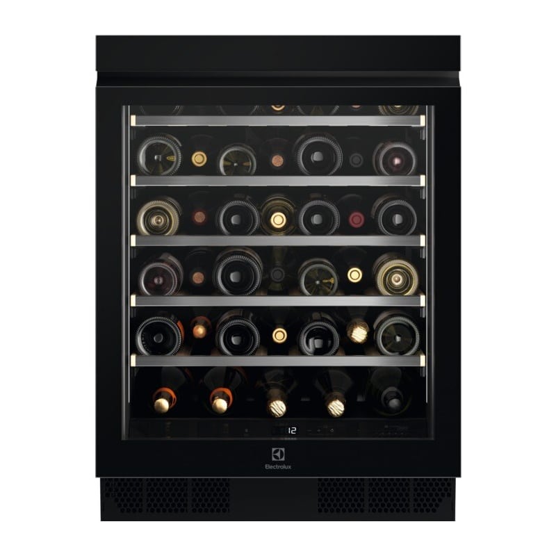 Vstavaná vinotéka, Trieda energetickej účinnosti: F, Celkový objem (lit.): 134, Hlučnosť: 38 dB (A), Farba/dizajn chladničky: Black Glossy Glass, Poličky chladničky: 5 plnej šírky, Wood with trim, Rozmery pre zabudovanie : 818 x 595 x 577 mm