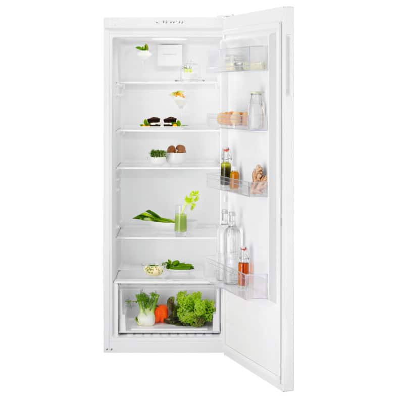 Voľnestojaca chladnička monoklimatická, Energetická trieda: E, Čistý objem chladiaceho priestoru: 309 l, Hlučnosť: 39 dB, Farba/dizajn chladničky: biela, Rozmery: 1550 x 595 x 667 mm