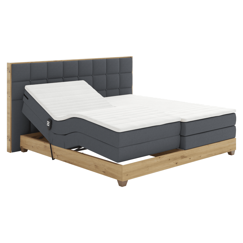 Elektrická polohovacia posteľ, boxspring, tmavosivá/dub artisan, 180×200, TIANA