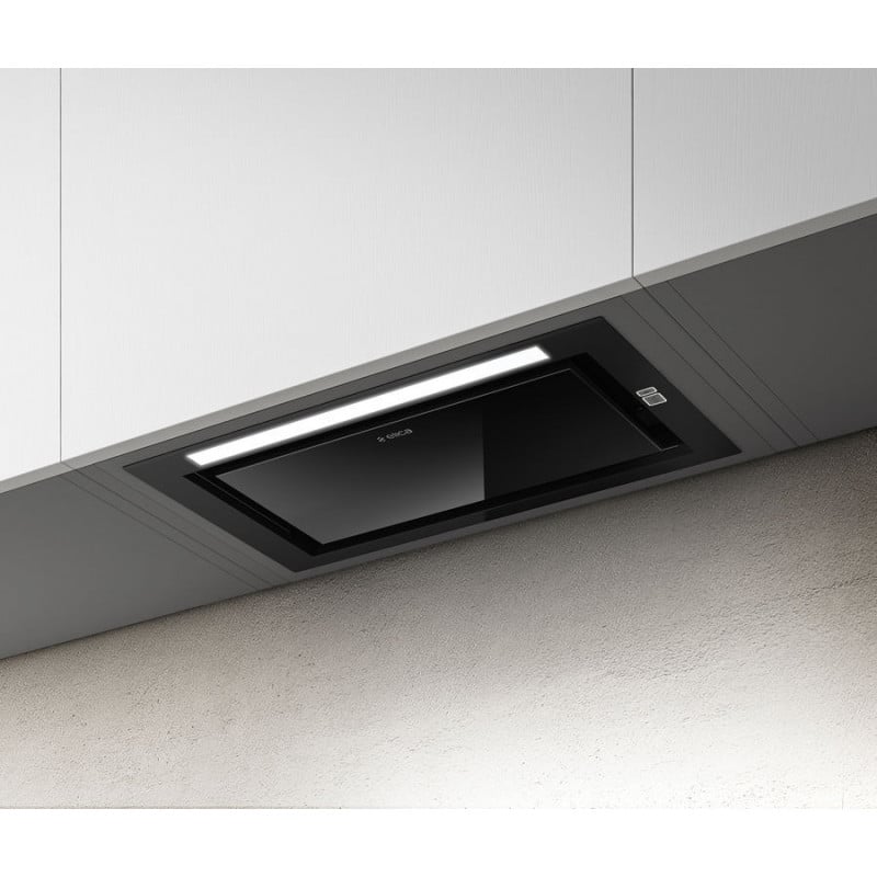 Vstavaný odsávač v prevedení čierny efekt jemného dotyku + čierne sklo , šírka odsávača je 72 cm, zabudovanie do skrinky šírky 90 cm, sací výkon maximálny: 700 m3/hod, hlučnosť minimálna/maximálna: 51 – 67 dB (A), priemer výstupného otvoru: 150 mm, Wifi pripojenie umožňuje ovládanie cez hlasového asistenta, alebo aplikáciou Elica Connect.