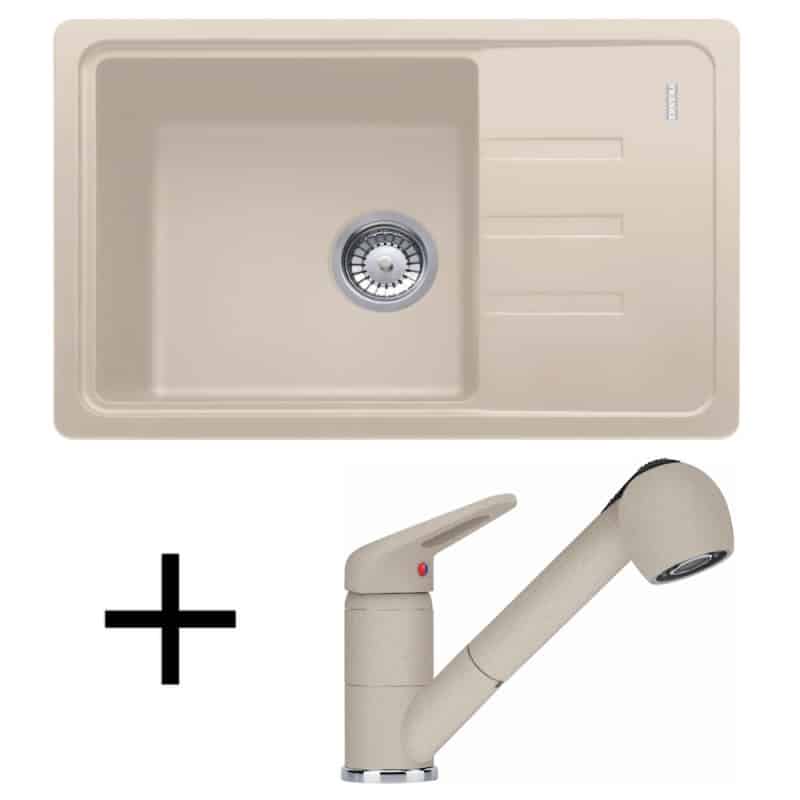 sahara, Praktická a dizajnovo atraktívna kombinácia drezu BSG 611-62 a batérie FC 9547 v jednom sete, ponúka maximálnu kvalitu za dobrú cenu. Fragranitový drez aj batéria majú 9 rôznych farebných variánt. Pre maximálny komfort batéria disponuje s výsuvnou sprchou. Drez pozostáva z hlbokej vaničky a priestrannej odkladacej plochy.