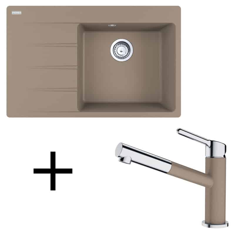 kašmír, Kvalitný, fragranitový set pozostávajúci z drezu CNG 611-78 TL a batérie FC 3055, ponúka možnosť 4andnbsp;farebnýchandnbsp;kombinácií. Drez disponuje s hĺbkou vaničky 200 mm a batéria s vyťahovacou konvockou, osadenou perlátorom.
