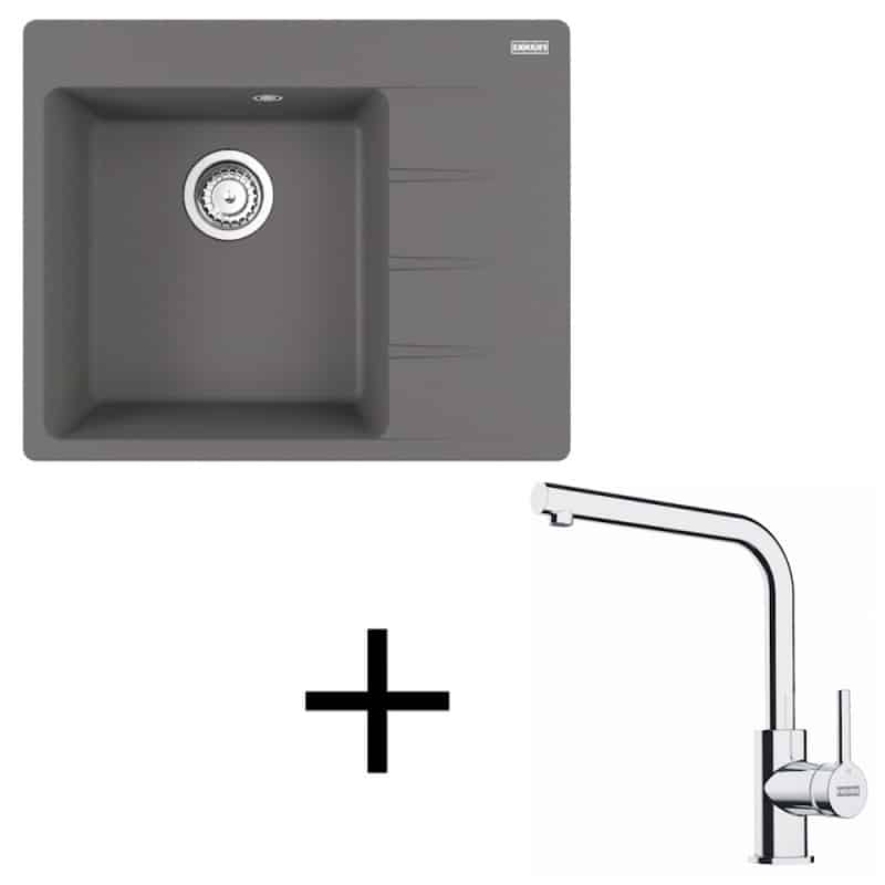 šedý kameň, Fragranitový set ponúka kvalitu za výbornú cenu. Drez sa vyznačuje veľkou vaničkou a praktickou odkladacou plochou. Batéria je charakteristická svojim nadčasovým dizajnom, ktorý je vhodný do akéhokoľvek kuchynského prostredia