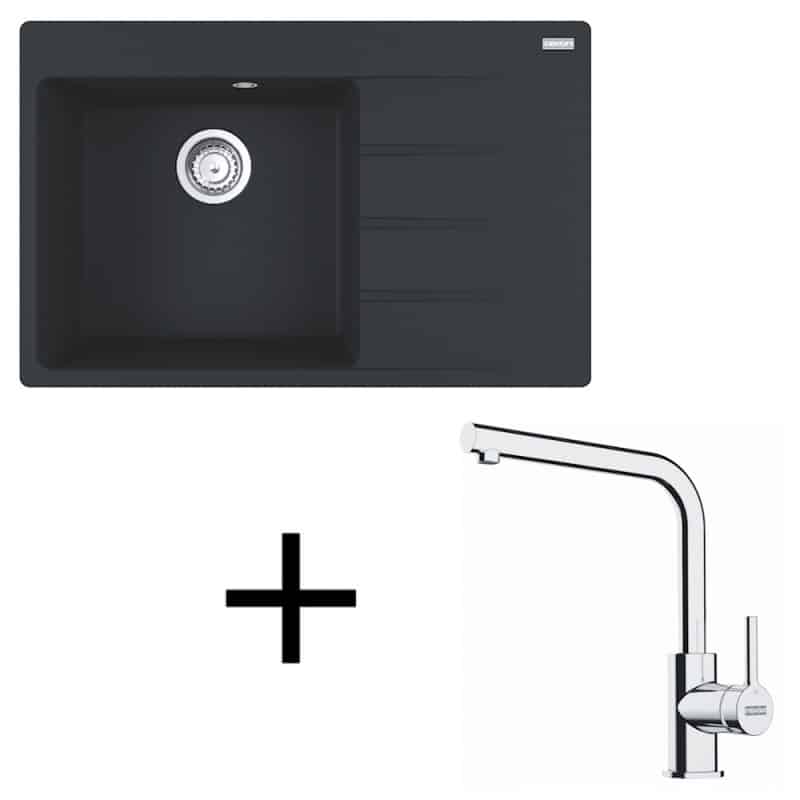 Tento set je štýlovou a praktickou voľbou do každej modernej kuchyne. Granitový drez sa vyznačuje svojou trvácnosťou a odolnosťou proti poškriabaniu. Pre maximálny komfort drez pozostáva z veľkej vaničky a praktickej odkladacej plochy. Kuchynská batéria v chrómovom prevedení je charakteristická svojim otáčateľným odtokom o 360° a nadčasovým dizajnom.