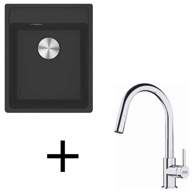čierna matná, Set G252 pozostáva zo špecifického drezu MRG 610-37 RTL, ktorý je vďaka svojim rovným líniám jednoduchý na údržbu a chrómovej batérie FS 3229.031, ktorá disponuje s vyťahovacou koncovkou osadenou perlátorom.