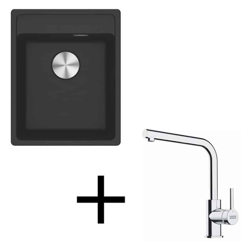 onyx, Set G253 pozostáva z fragranitového drezu MRG 610-37 RTL a metalickej batérie FS 3230.031. Batéria v chrómovom prevedení je špecifická svojim nadčasovým dizajnom, ktorý sa hodí do akéhokoľvek kuchynského prostredia. Drez so svojimi rovnými líniami je charakteristický svojou hĺbkou vaničky, ktorá je až 200 mm.