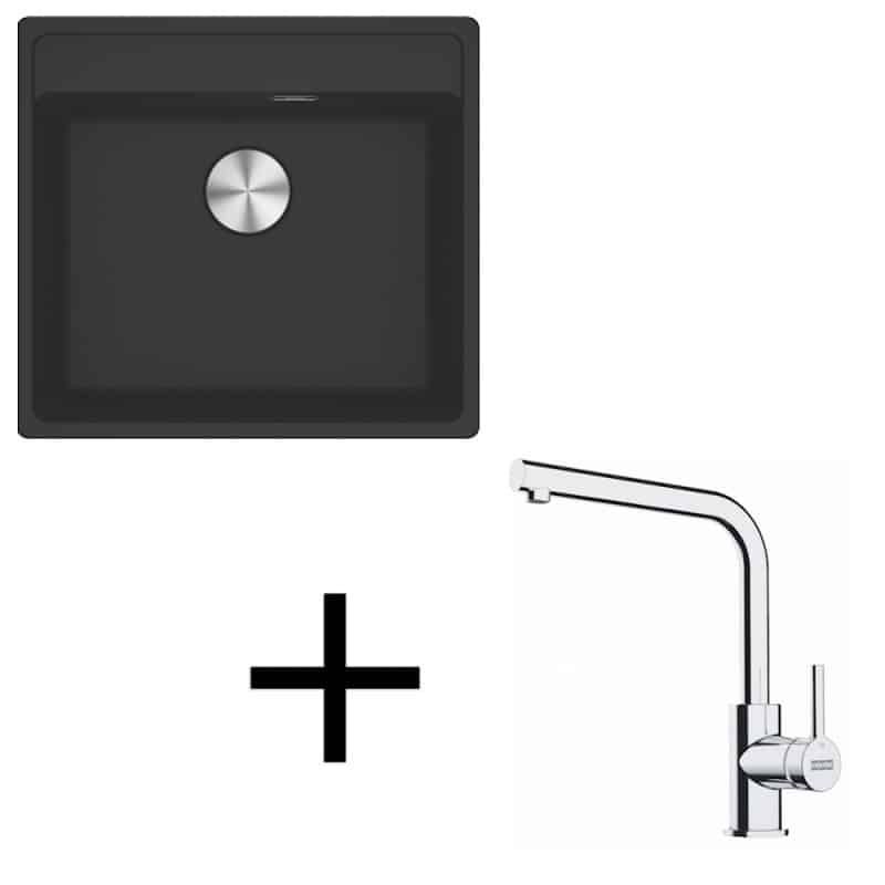 čierna matná, Set s nadčasovým dizajnom pozostáva zo špecifického drezu MRG 610-52 RTL a metalickej batérie FS 3230.031. Drez je jednoduchý na údržbu vďaka svojim rovným líniám. Batéria v chrómovom prevedení disponuje s otáčateľným odtokom až o 360°.