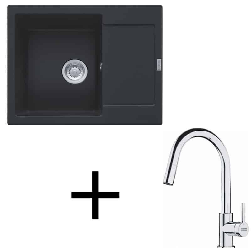 Fragranitový set G256 pozostáva z metalickej batérie FS 3229.031, ktorá disponuje s vyťahovacou koncovkou a drezu MRG 611-62, ktorý pozostáva z praktickej vaničky a odkladacej plochy.