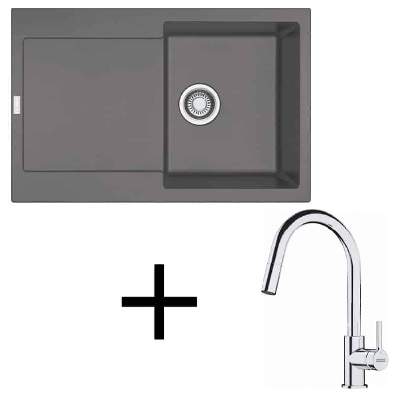 šedý kameň, Dizajnovo atraktívny set G258 pozostáva z fragranitového drezu MRG 611 aandnbsp;metalickej batérie FS 3229.031. Drez ponúka maximálny komfort vďaka priestrannej odkladacej ploche a veľkejandnbsp;vaničke s hĺbkou až 200 mm. Batéria v chrómovom prevedení disponuje s vyťahovacou koncovkou, praktickou výškou až 360 mm a otáčateľnám odtokom o 150°.