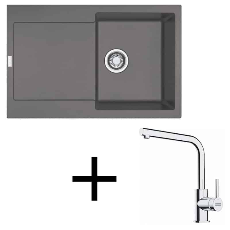 šedý kameň, Praktický set, ktorý pozostáva z drezu MRG 611 a metalickej batérie FS 3230.031 ponúka kvalitu za výbornu cenu. Drez sa vyznačuje veľkou vaničkou a priestrannou odkladacou plochou, pričom batéria v chrómovom prevedení svojim dizajnom, ktorý sa hodí do akéhokoľvek kuchynského prostredia.