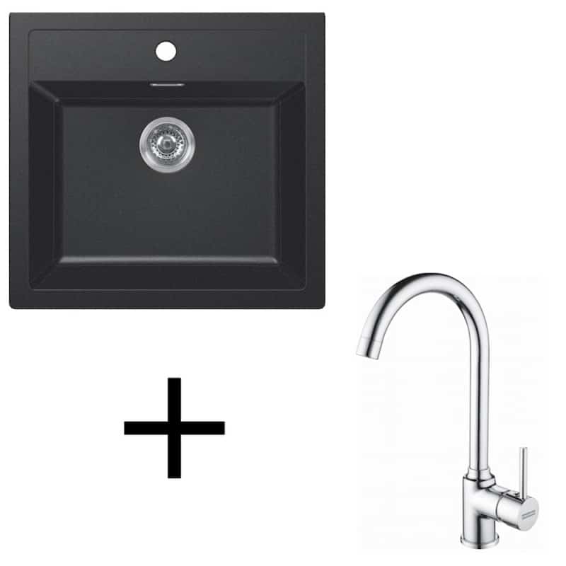 čierna, Dizajnovo nadčasový set sa hodí do akejkoľvek kuchyne. Drez je vyrobený z kvalitného materiálu Tectonite®, ktorý je novou generáciou kuchynských drezov. Je odolný, pevný a jednoduchý na údržbu. Batéria v lesklom chrómovom prevedení ponúka maximálny komfort vďaka svojej výške, ktorá je až 350 mm, čo umožňuje jednoduchšie umývanie i napĺňanie aj veľkých kuchynských riadov.