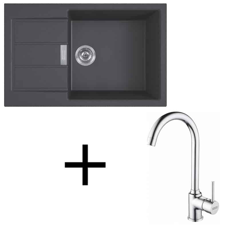 čierna, Set T106 je spojením maximálneho komfortu a elegatného dizajnu za výbornú cenu. Drez má veľkú vaničku s hĺbkou až 200 mm a praktickú odkladaciu plochu. Materiál drezu je pevný, odolný a jednoduchý na údržbu. Chrómová batéria so svojim nadčasovým dizajnom bude ozdobou akejkoľvek kuchyne.