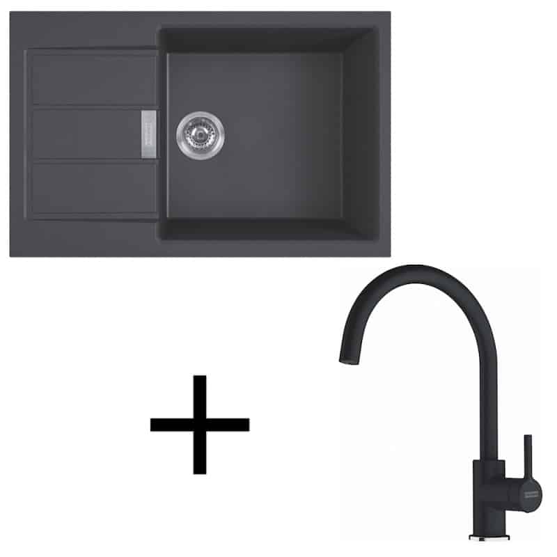 čierna, Set ponúka kvalitu za výbornú cenu. Kompozitný drez S2D 611-78 XL je vyrobený z materiálu Tectonite, ktorý sa vyznačuje svojou odolnosťou a farebnou stálosťou. Batéria FC 6018 disponuje s výškou až 350 mm, čo umožňuje jednoduchšie umývanie a napĺňanie i väčších kuchynských riadov.