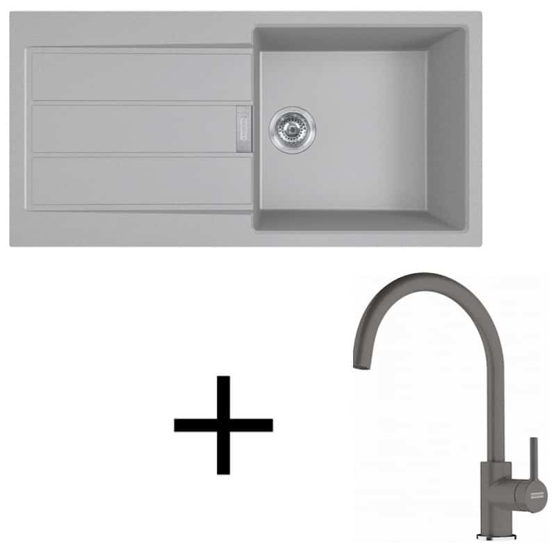 šedá, Tento set ponúka maximálnu funkčnosť a elegantný dizajn v jednom. Drez s extra veľkou vaničkou, ktorej hĺbka je až 200 mm disponuje aj s veľkou odkladacou plochou, čo umožňuje viac miesta pre umývanie riadov či prípravu jedál. Pre maximálny komfort je set doplnený aj o vysokú batériu FC 6018, ktorá je navyše jednoduchá na údržbu.
