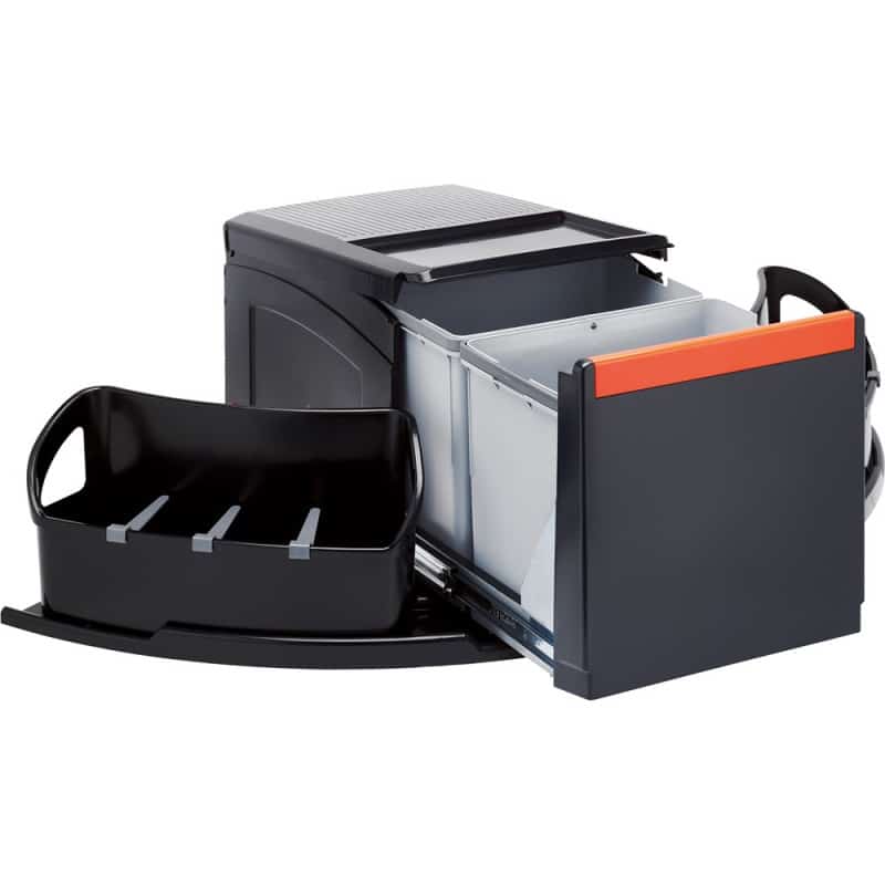 Cube rohový košový systém Franke disponuje s objemom 2×18 l a rozmermi 110 x 700 x 335 mm. Systém tiedeného odpadu je vhodný na zabudovanie pod skrinku, ktorej potrebná šírka je 90 cm.