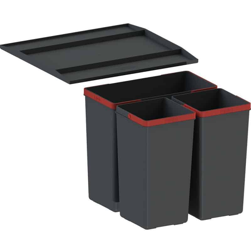 Systém košov od spoločnosti FRANKE je vyrobený z recyklovateľného antiseptického plastu. Disponuje s jedným 14,5 l a dvoma 7,5 l košmi.