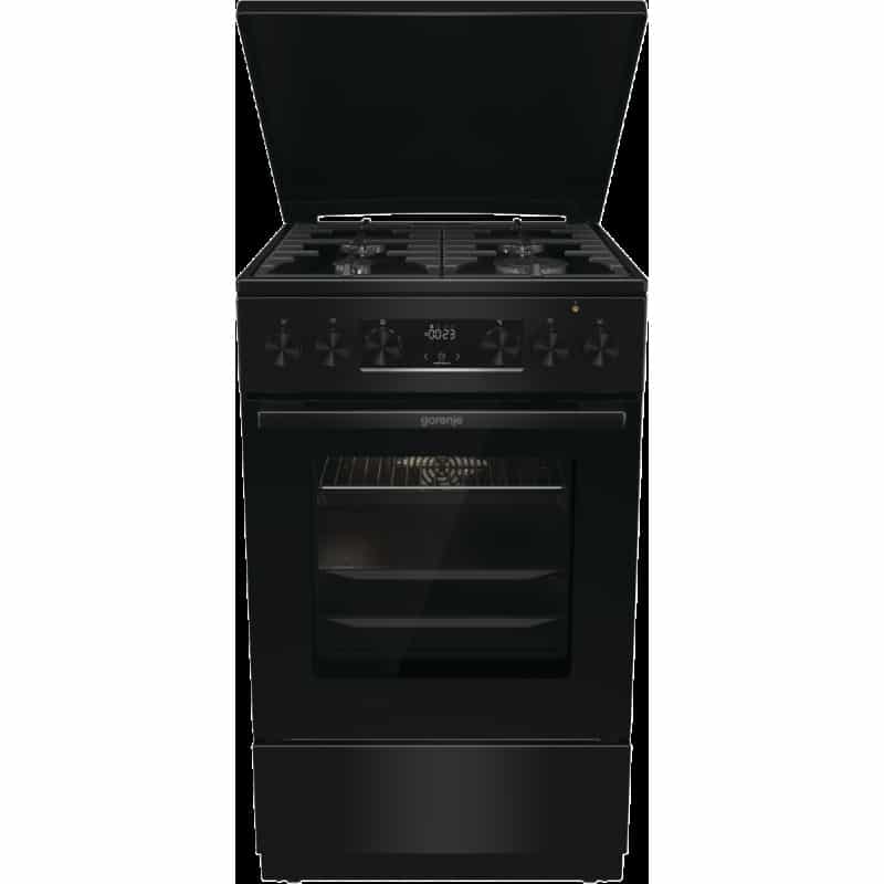 Rad G600, Kombinovaný sporák v čiernom prevedení; šírka 50 cm ; Objem 70 l ; Tvar HomeMade – Vždy rovnomerne upečené ; Technológia MultiAir – zaručuje optimálnu cirkuláciu horúceho vzduchu v rúre ;andnbsp; FrozenBake – ideálny program pre všetky mrazené potraviny a predpripravené jedlá; Pizza program, GentleClose – tlmené zatváranie dvierok rúry ; Jednoručné zapaľovanie plynových horákov varnej platne; Čiastočne výsuvné teleskopické lišty na 1 úrovni; Liatinové mriežky