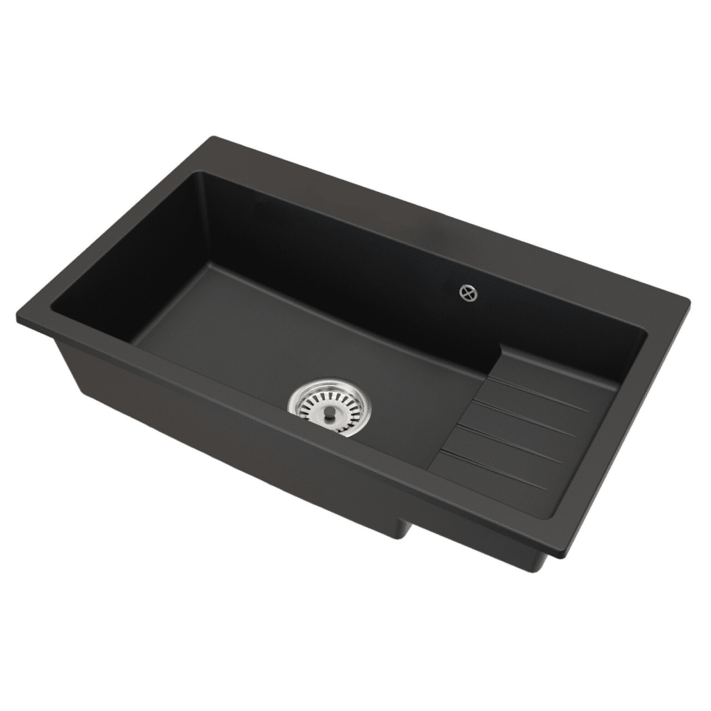 Granitový drez so sifónom a odkvapkávacou plochou, čierna, 80×48, RONA
