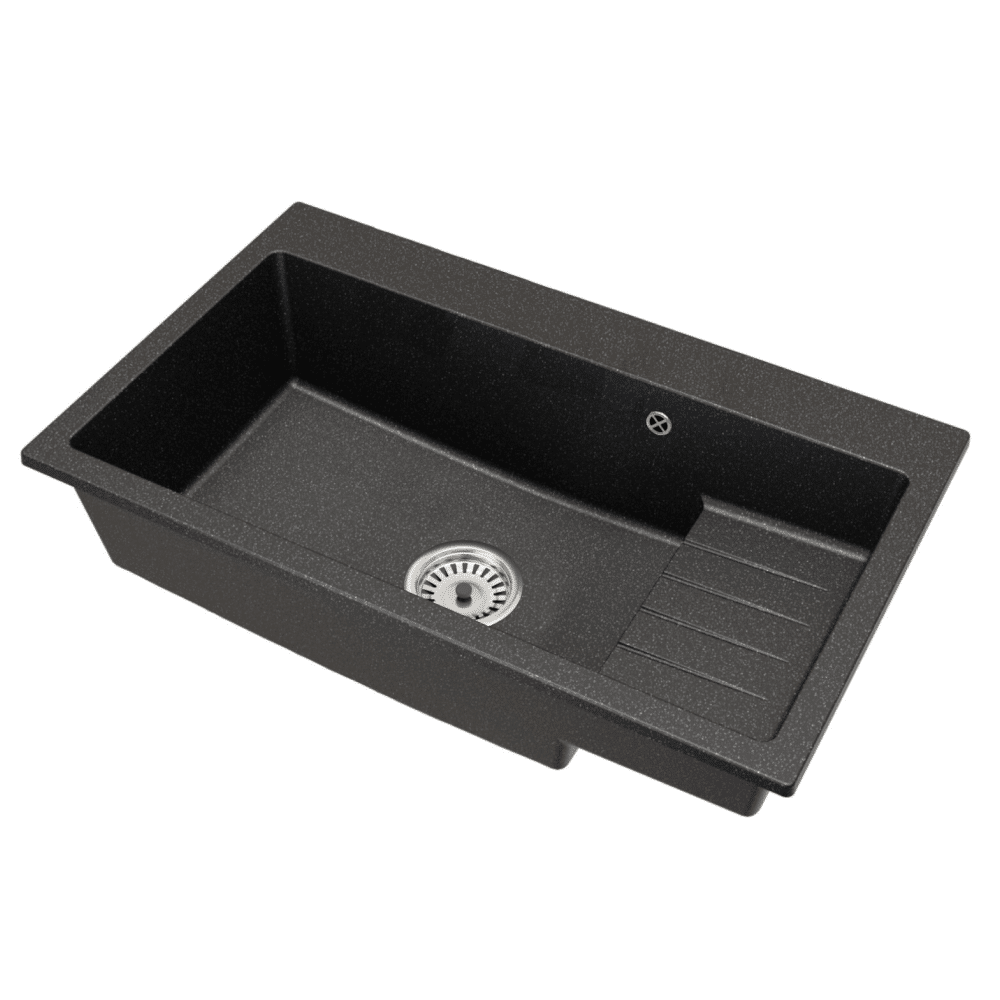 Granitový drez so sifónom a odkvapkávacou plochou, grafit, 80×48, RONA