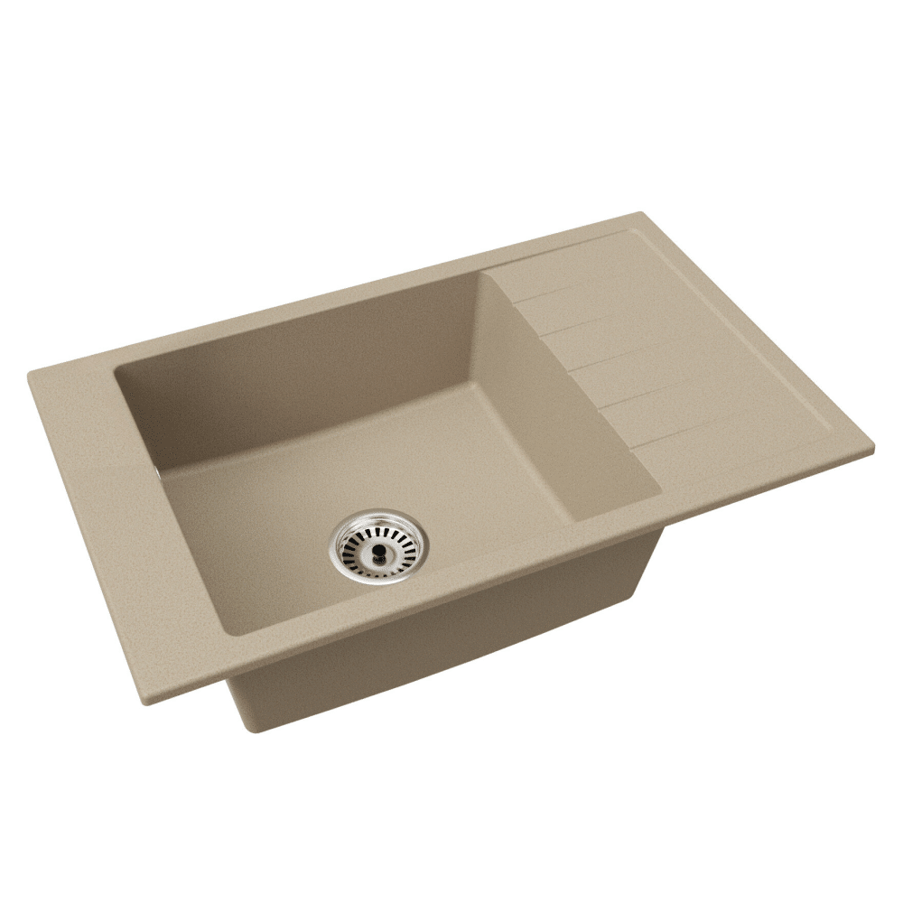 Granitový drez so sifónom a odkvapkávacou plochou, univerzálny, béžová, 79,5×48, LUSIN