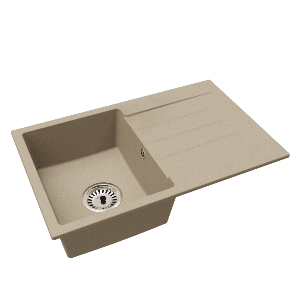 Granitový drez so sifónom a odkvapkávacou plochou, univerzálny, béžová, 79,5×49,5, ROVANA