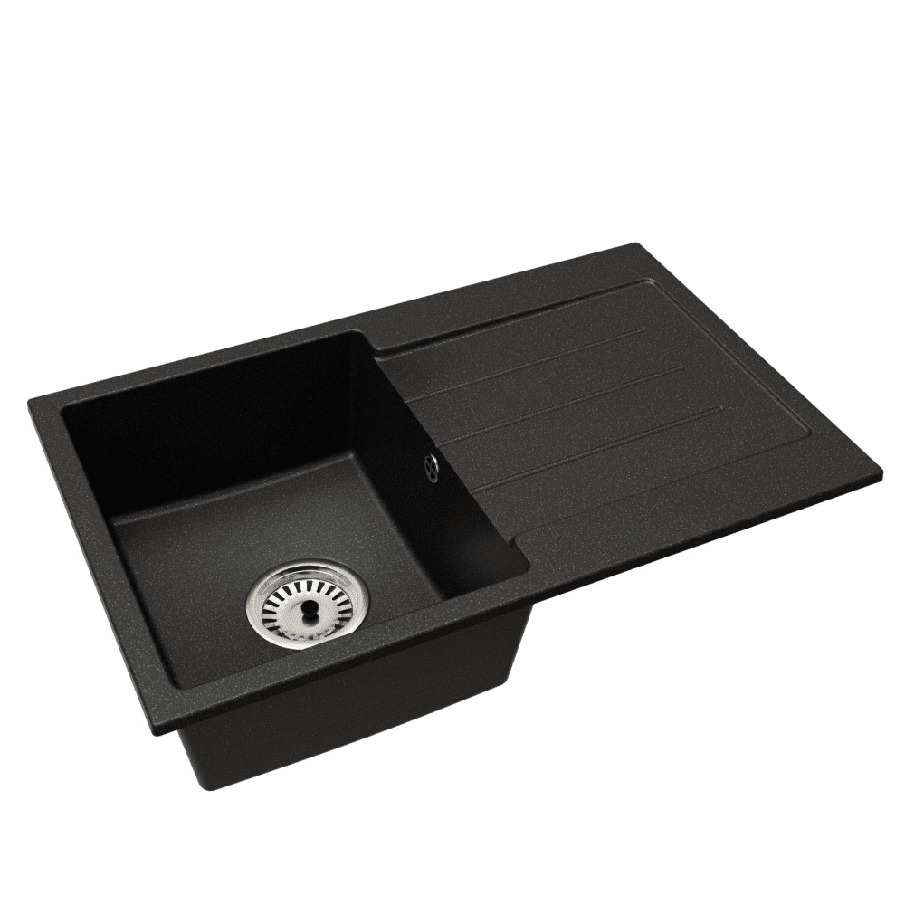 Granitový drez so sifónom a odkvapkávacou plochou, univerzálny, grafit, 79,5×49,5, ROVANA