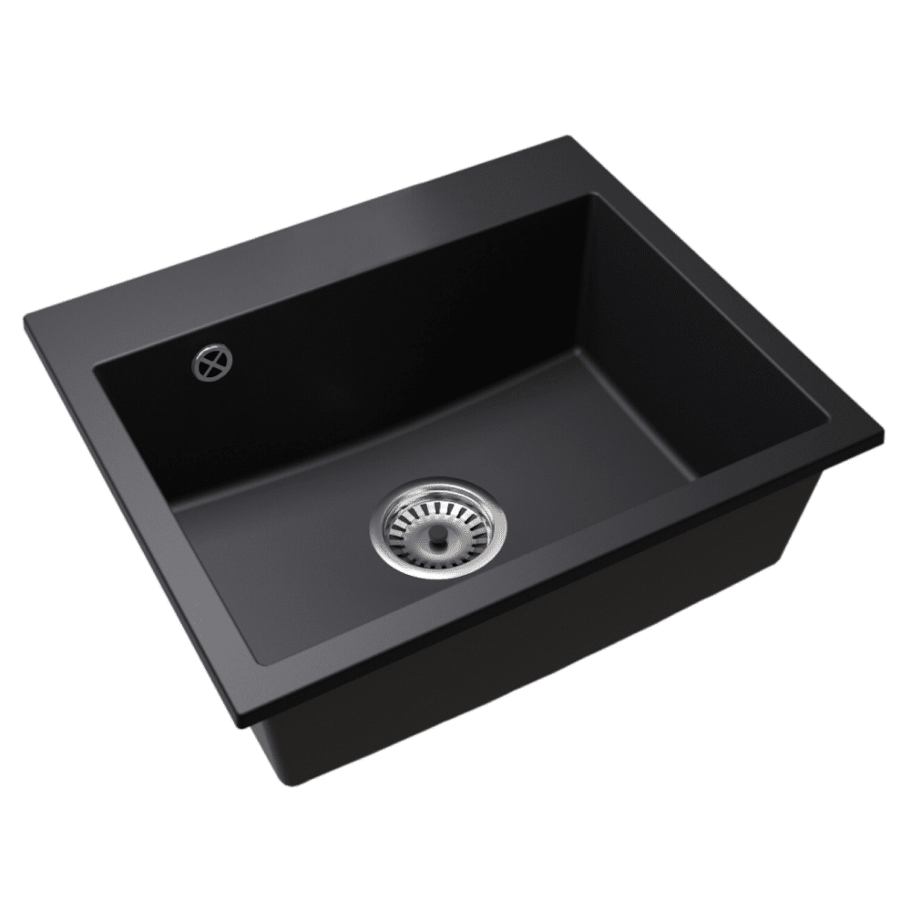 Granitový drez so sifónom, čierna, 58×49, SIVEN 55