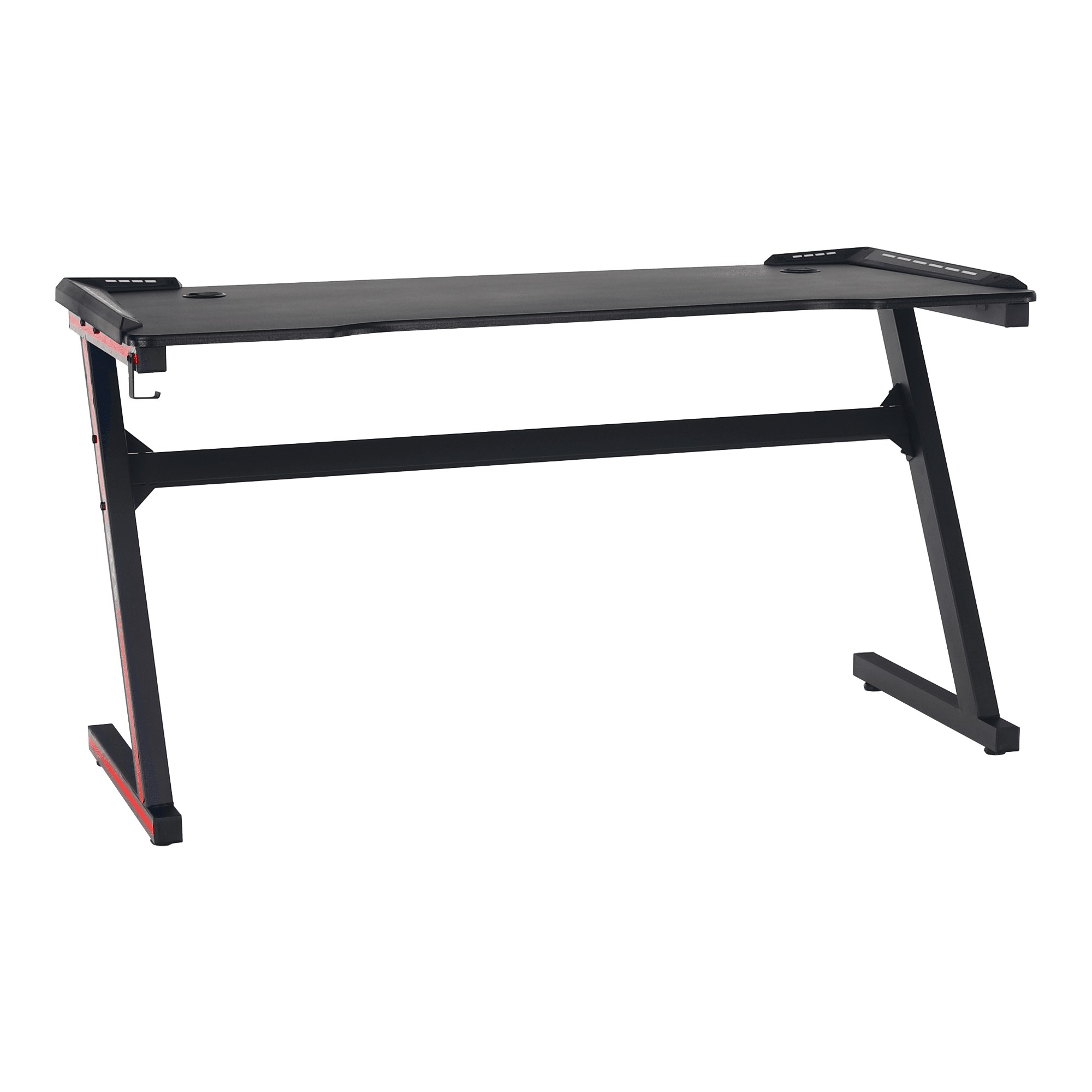 Herný stôl/počítačový stôl, s RGB LED osvetlením, čierna/červená, MACKENZIE 140cm