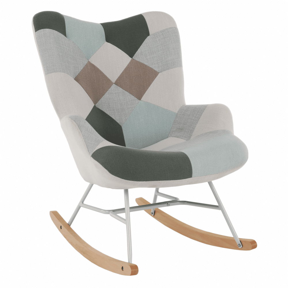 Hojdacie kreslo, zelená-biela patchwork/biela/buk, GERON