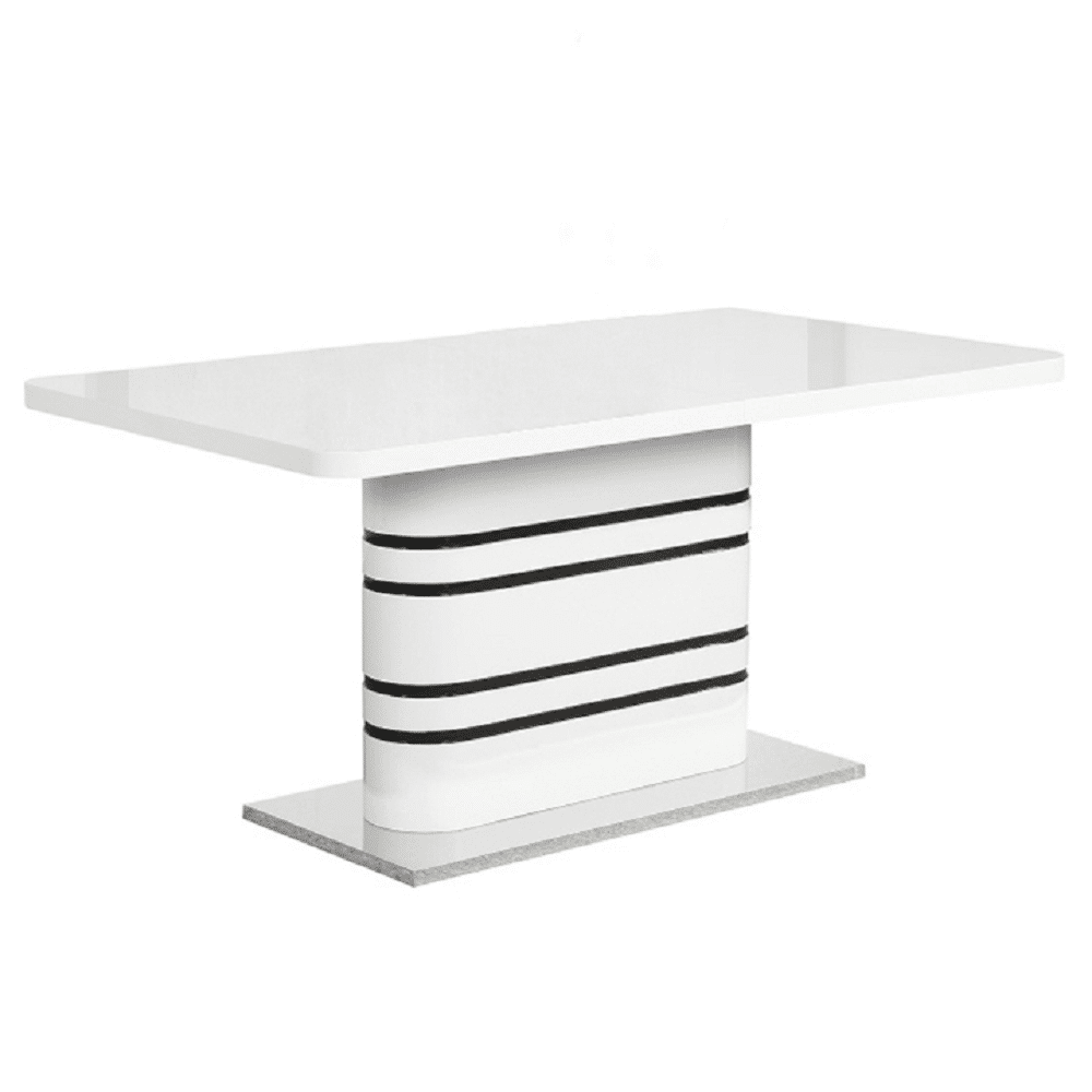 Jedálenský rozkladací stôl, biela vysoký lesk HG/čierne pásy, 160-200×90 cm, TUBAL