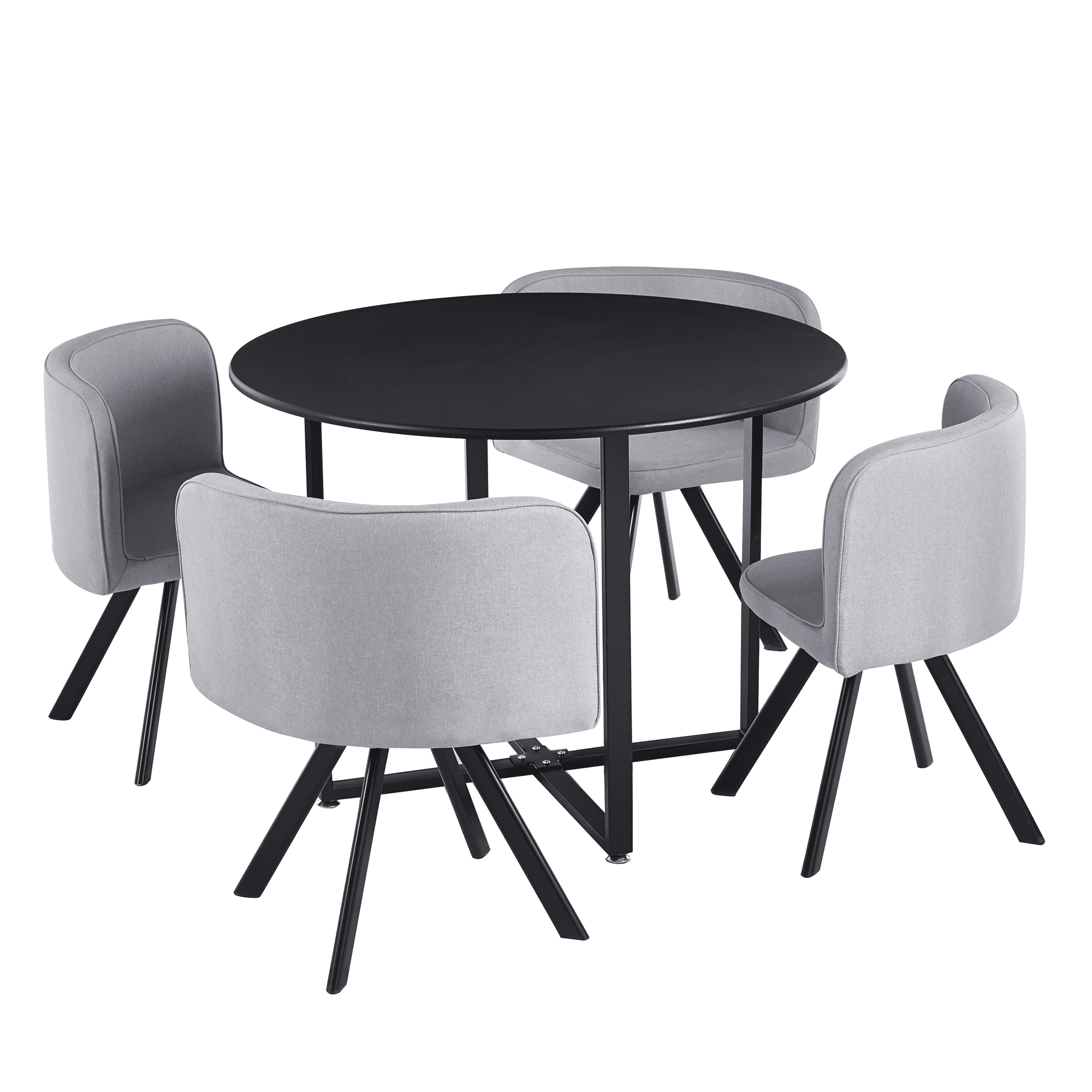 Jedálenský set 1+4, čierna/svetlosivá, BEVAN NEW