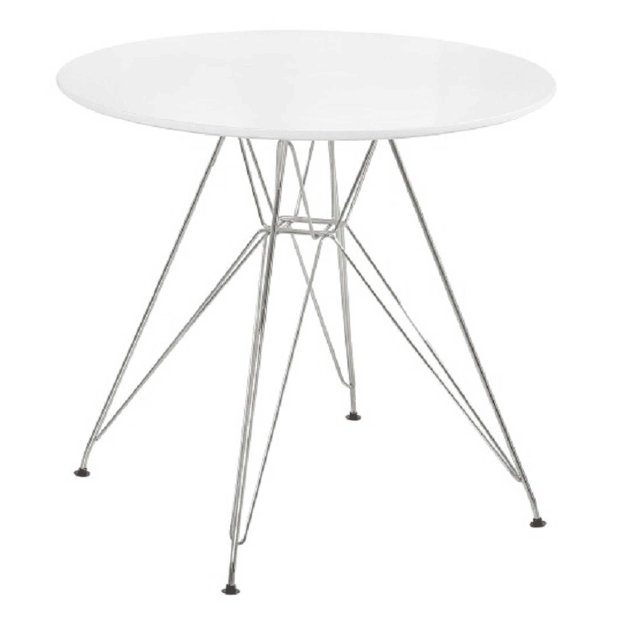 Jedálenský stôl, materiál: MDF/chróm, prevedenie: biela HG, rozmery (priemer x V): 80×76 cm. Možnosť kombinovať so stoličkami METAL, FEMAN a ANISA.