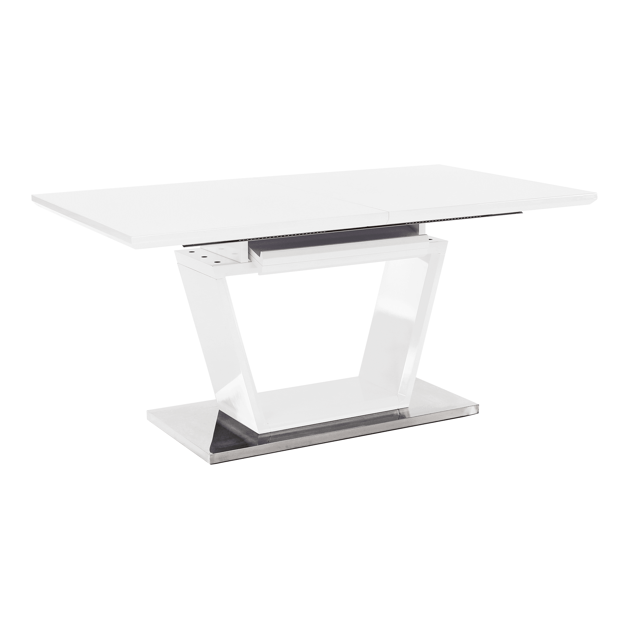 luxusný a dizajnový rozkladací jedálenský stôl, farebné prevedenie: biela s extra vysokým leskom HG, materiál: MDF+oceľ, ŠxHxV: 160-220x90x76 cm.