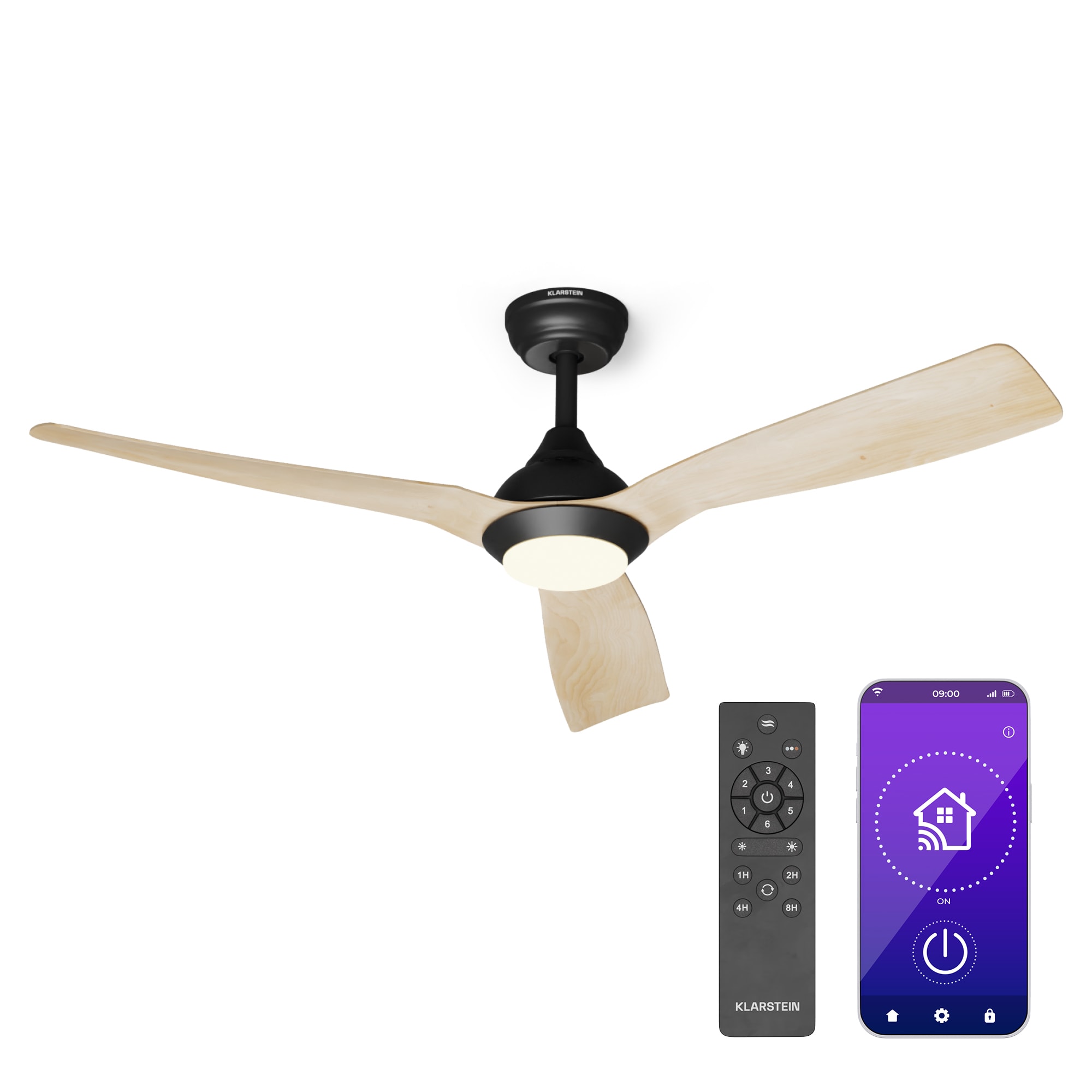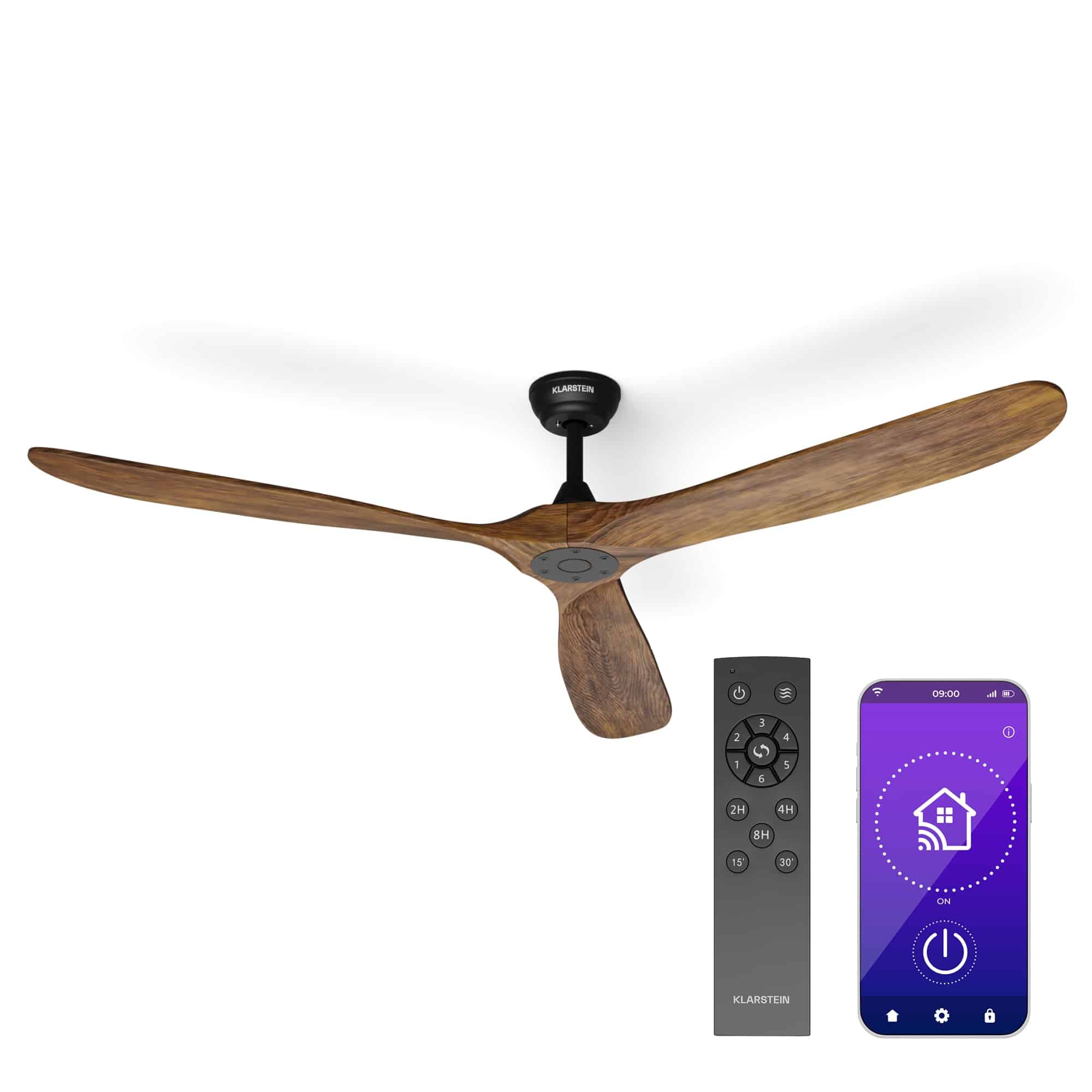 Klarstein Bahama Breeze Smart Stropný ventilátor , lopatky rotora z masívneho dreva, diaľkové ovládanie + ovládanie pomocou aplikácie