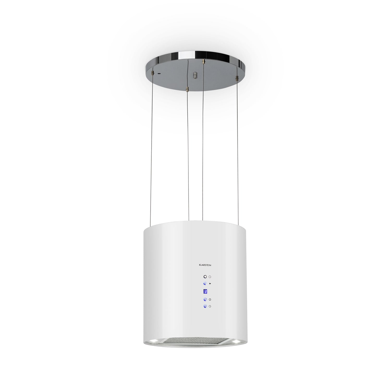 Klarstein Barett, digestor, 35 cm, ostrovčekový, 560 m³/h, LED, filter s aktívnym uhlím, biely